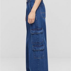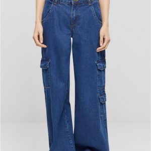 Urban Classics Jeans | DAMEN Mid Waist Cargo Denim Pants mid indigo washed