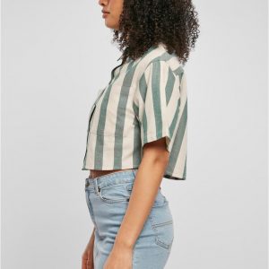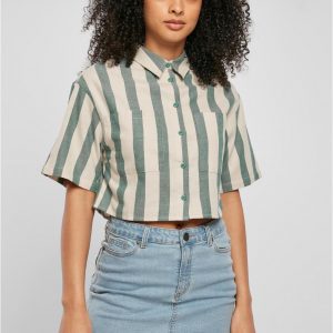 Urban Classics Blusen | DAMEN Short Oversized Stripe Shirt greenlancer|softseagrass