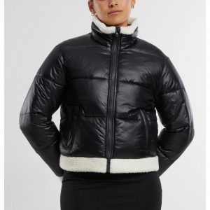 Urban Classics Leichte Jacken | DAMEN Recycled Shiny Puffer Sherpa Jacket black|whitesand