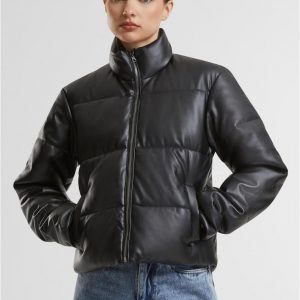 Urban Classics Leichte Jacken | DAMEN Synthetic Leather Puffer Jacket black