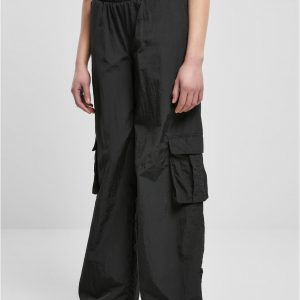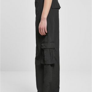 Urban Classics Cargohosen | DAMEN Wide Crinkle Nylon Cargo Pants black