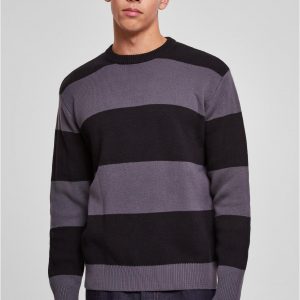 Urban Classics Strickware | HERREN Heavy Oversized Striped Sweatshirt black|darkshadow