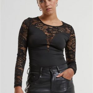 Urban Classics Bodies | DAMEN Flock Lace Body black