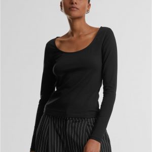 Urban Classics Langarmshirts | DAMEN Wide Neck Longsleeve 2-Pack black+white