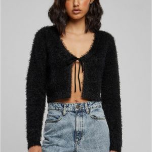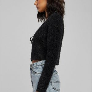 Urban Classics Strickware | DAMEN Short Rib Knit Cardigan black