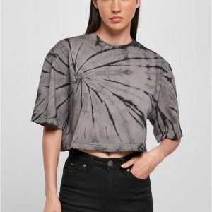 Urban Classics T-Shirts | DAMEN Oversized Cropped Tie Dye Tee black|ghostgreen