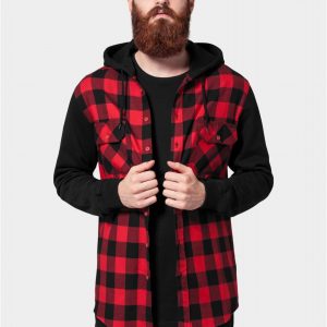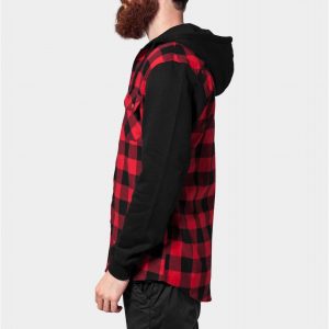 Urban Classics Hemden | HERREN Hooded Checked Flanell Sweat Sleeve Shirt blk|red|bl