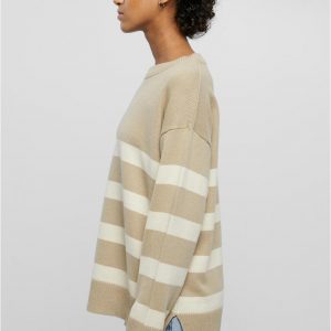 Urban Classics Strickware | DAMEN Striped Knit Crew Sweater wetsand|sand